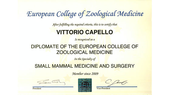 Il dott. Capello è Medico Veterinario Specialista in Medicina e Chirurgia dei mammiferi esotici da compagnia.