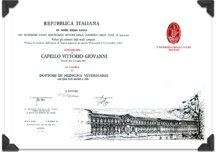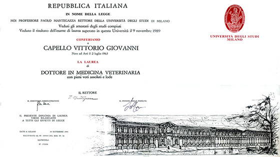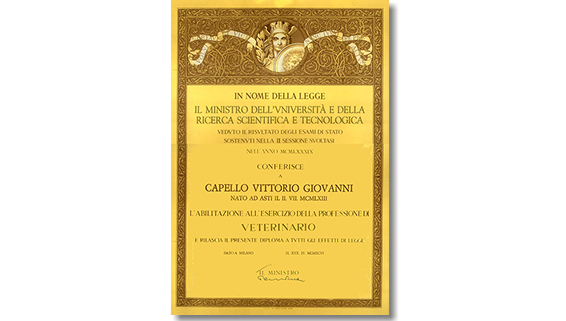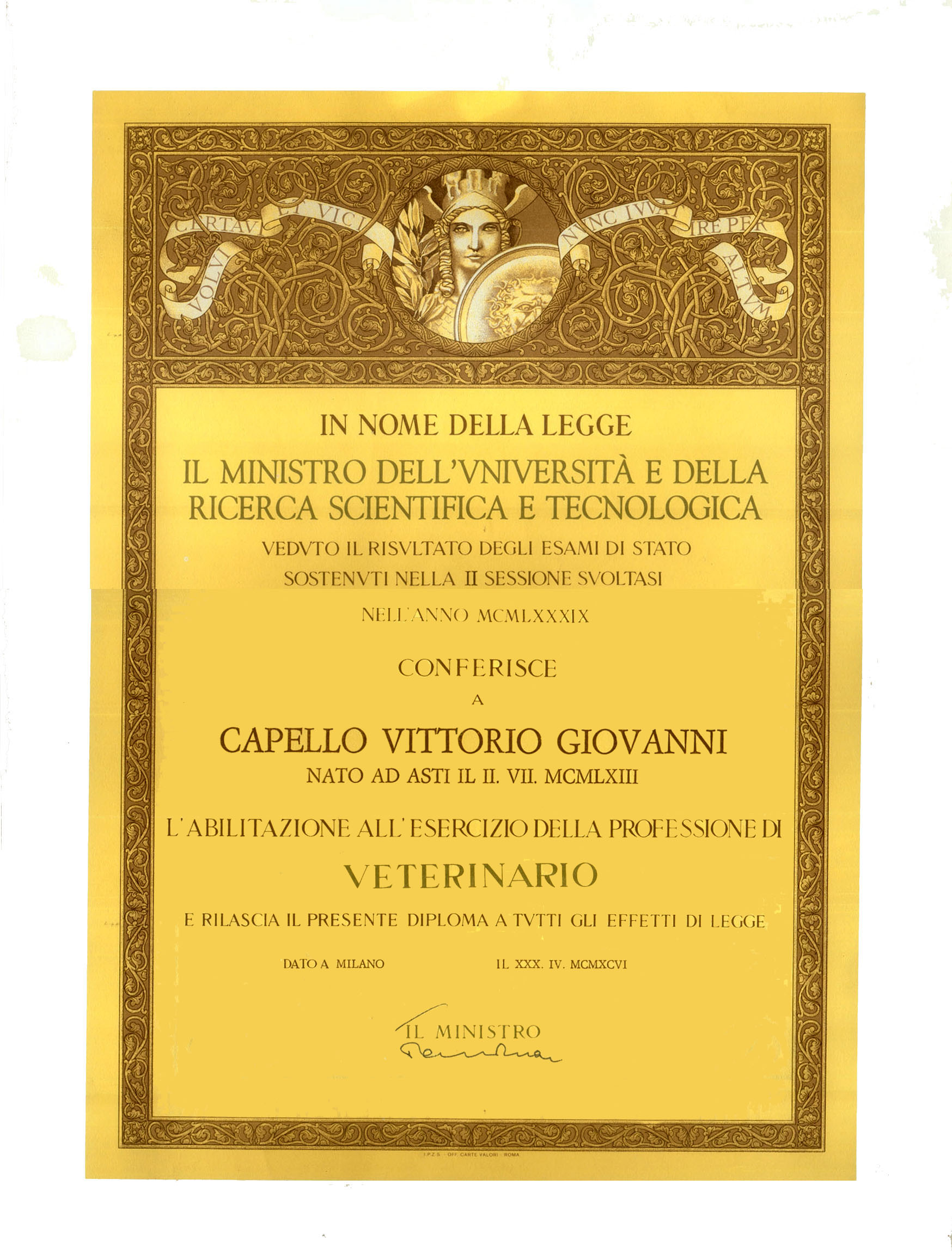 Abilitato alla professione di Medico Veterinario con voti 98/120, è iscritto all'Ordine dei Medici Veterinari della Provincia di Milano