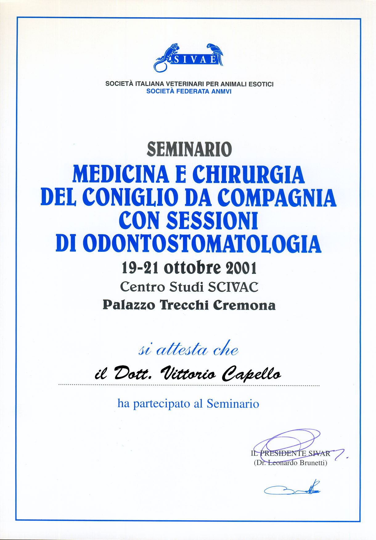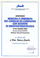 Medicina e Chirurgia del Coniglio da compagnia con sessioni di Odontostomatologia (19-21 ottobre 2001)